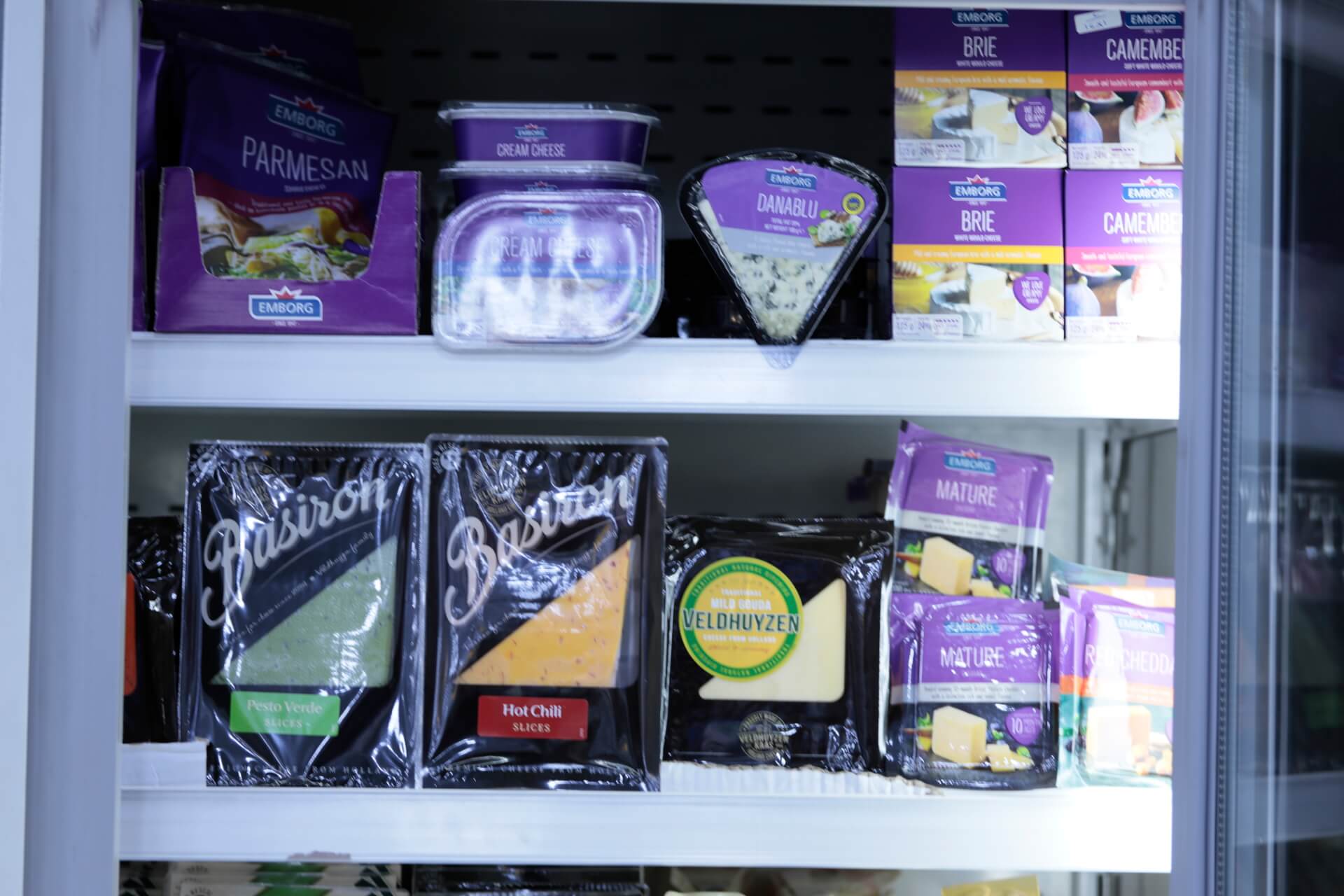 جگە لە جۆرەکانی شیر ، چەندین جۆری پەنیری فەرەنسی و ئیتاڵی و ھۆڵەندی بەردەستە ، ھەروەھا ھەموو ئەو بەرھەمانە لە خۆ دەگرێت کە لە شیر دروست دەکرێن و ەک قەیماغ و ماست. نزیکەی ٤٠٠ بابەت بەردەستە.